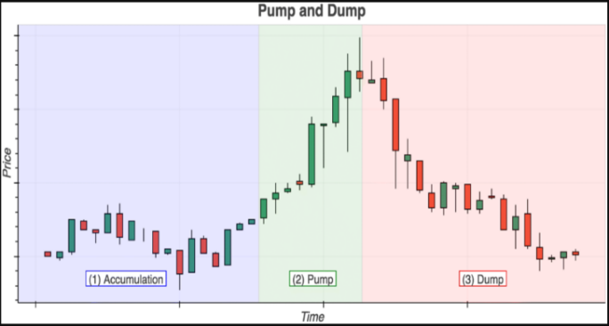 More recently, there has been activity that appears to replicate the good old-fashioned “pump-and-dump” scheme. It lures naive investors by portraying mediocre or poor investments as highly profitable or having great future potential. The process has three phases: 1) accumulation, 2) pump, and 3) dump.